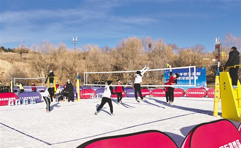 1月16日,2026年鄂爾多斯雪地排球邀請賽在東勝區(qū)九城宮國際滑雪場激情開賽。比賽采用3人制,分設(shè)男子組與女子組,共吸引來自寧夏、天津、北京等八省區(qū)市60多名運(yùn)動員參賽。(記者 布音額尼爾樂 攝)
