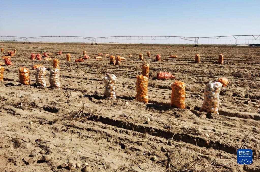 烏蘭布和沙漠種植的土豆豐收。(新華社記者李云平 攝)