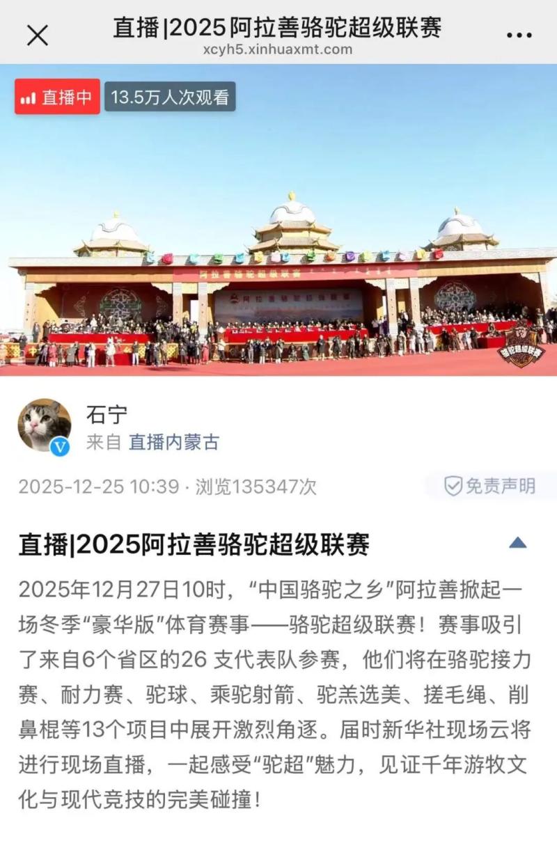 助力阿拉善駱駝文化與賽事熱度
