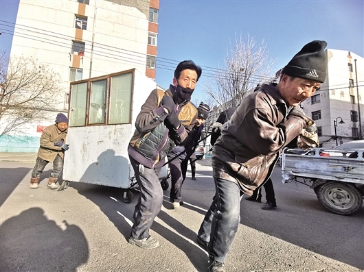 “由于您的車長期占用小區(qū)公共資源,給小區(qū)居民出行帶來不便。請您看到通知后,在3日內(nèi)自行將您的車挪出小區(qū),如逾期未挪走,我們將您的車做無主僵尸車報相關(guān)單位統(tǒng)一處理”。1月15日,黃河西路街道友誼19#四社區(qū)將通知貼在一輛鐵皮車輛醒目的位置,一直無人將車輛挪走。圖為1月18日,友誼19#四社區(qū)的工作人員將該“僵尸車”清走時,車主突然現(xiàn)身。社區(qū)工作人員耐心細(xì)致地與該車主交流后,車主表示配合。文/圖 李強