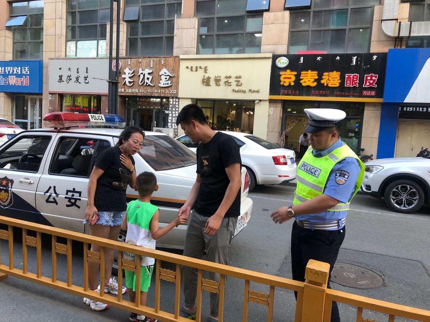 7月14日19時(shí)許,呼和浩特市萬達(dá)一巷,呼和浩特市公安局交警支隊(duì)賽罕大隊(duì)八中隊(duì)的民警正在這里巡邏。突然一名6歲左右的小男孩跑到執(zhí)勤交警律國(guó)偉面前:哭著說找不到父母,想請(qǐng)警察叔叔幫助尋找他的媽媽。