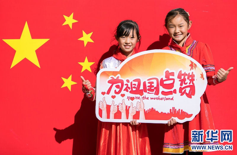 9月29日,內(nèi)蒙古呼和浩特市玉泉區(qū)五塔寺東街小學(xué)學(xué)生在主題快閃活動(dòng)上,祝福偉大祖國(guó)繁榮昌盛。新華網(wǎng)發(fā)(丁根厚攝)