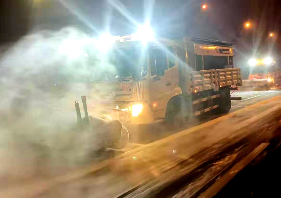 北疆新聞網(wǎng)、北疆新聞客戶端消息(記者 劉嬙)12月5日晚,內(nèi)蒙古自治區(qū)首府呼和浩特出現(xiàn)降雪天氣。為防止道路積雪結(jié)冰,保障廣大市民和車輛出行安全,呼和浩特市和各區(qū)兩級環(huán)衛(wèi)部門以雪為令,聞雪而動,按照清雪工作預(yù)案,分工明確,責(zé)任到人,機械和人工清雪緊密配合,第一時間在市區(qū)道路實施機械及人工清雪作業(yè),全面清理道路積雪結(jié)冰,確保高標準、高質(zhì)量、高效率地完成清雪任務(wù)。