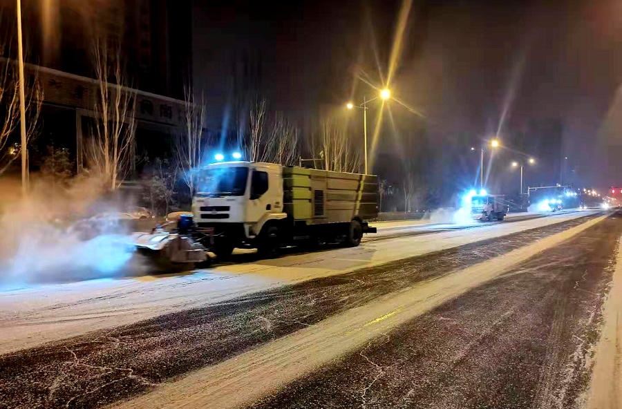 呼和浩特環(huán)衛(wèi)部門聞雪而動連夜清掃道路積雪
