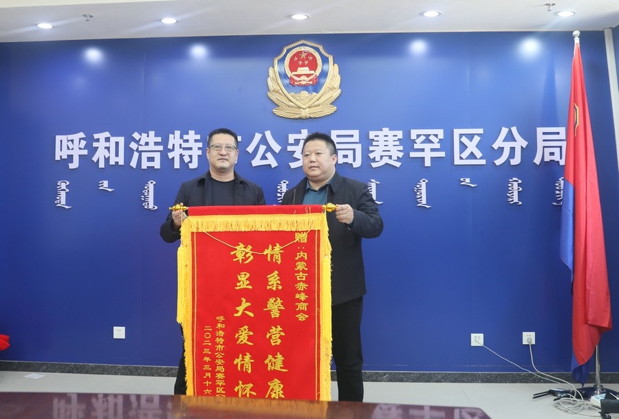 新華融媒、北疆新聞網(wǎng)、北疆新聞APP、北疆云消息(馬國(guó)鑫)3月17日,內(nèi)蒙古赤峰商會(huì)攜手內(nèi)蒙古蘭太藥業(yè)、內(nèi)蒙古蒙壹商貿(mào)公司,啟動(dòng)的“為奉獻(xiàn)者奉獻(xiàn)”公益行動(dòng),走進(jìn)呼和浩特市公安局賽罕區(qū)分局,向長(zhǎng)期奮戰(zhàn)在一線的人民警察,送去關(guān)心和關(guān)愛(ài)。