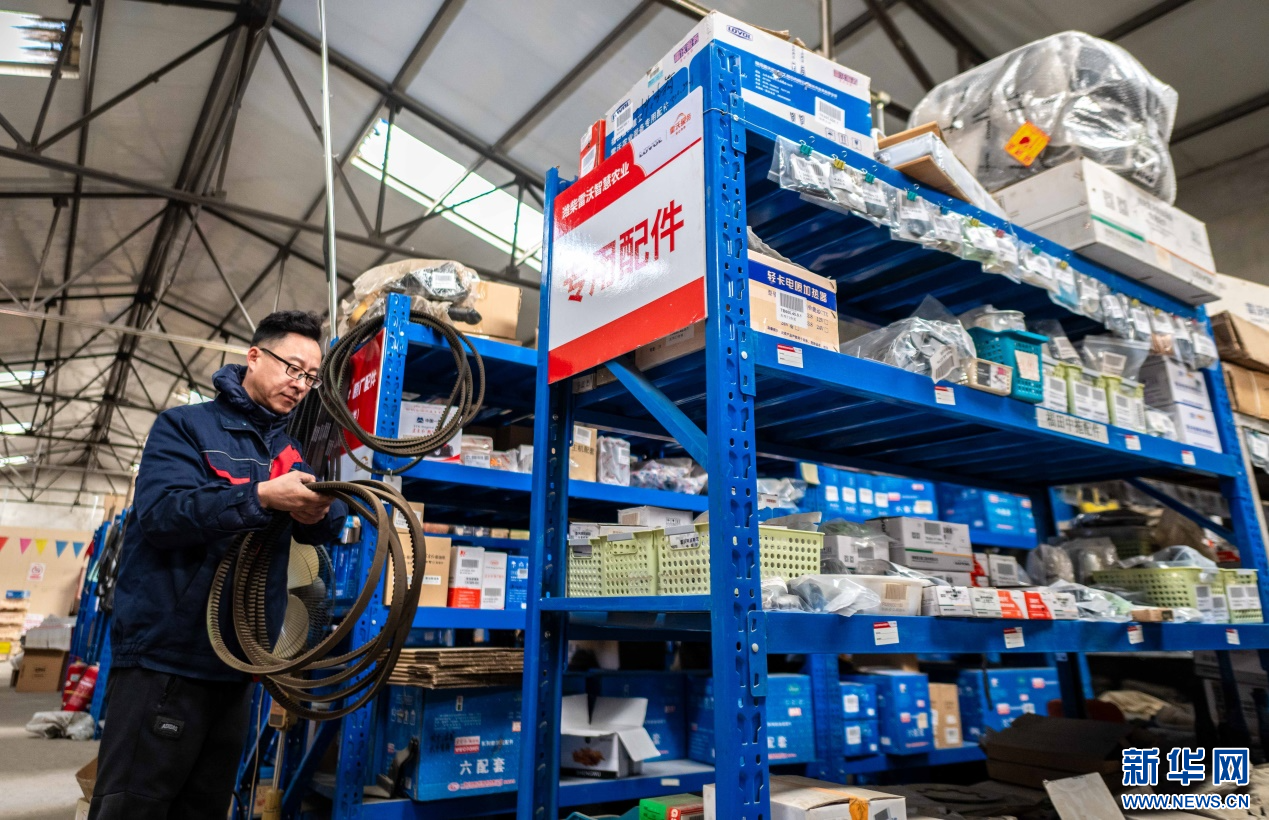 ??2月18日,在位于呼和浩特市玉泉區(qū)的一家農(nóng)機(jī)設(shè)備公司倉庫,工作人員在清點(diǎn)農(nóng)機(jī)具配件。新華網(wǎng)發(fā)(丁根厚 攝)