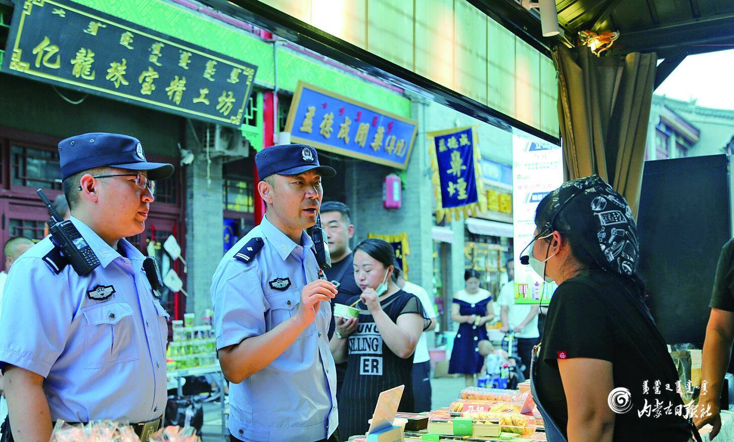 呼和浩特市玉泉區(qū)公安分局景區(qū)治安派出所民警立足大召寺AAAA 級景區(qū)及周邊治安管控和服務管理實際,加強日常巡邏,積極服務群眾、化解矛盾。李文彬 攝