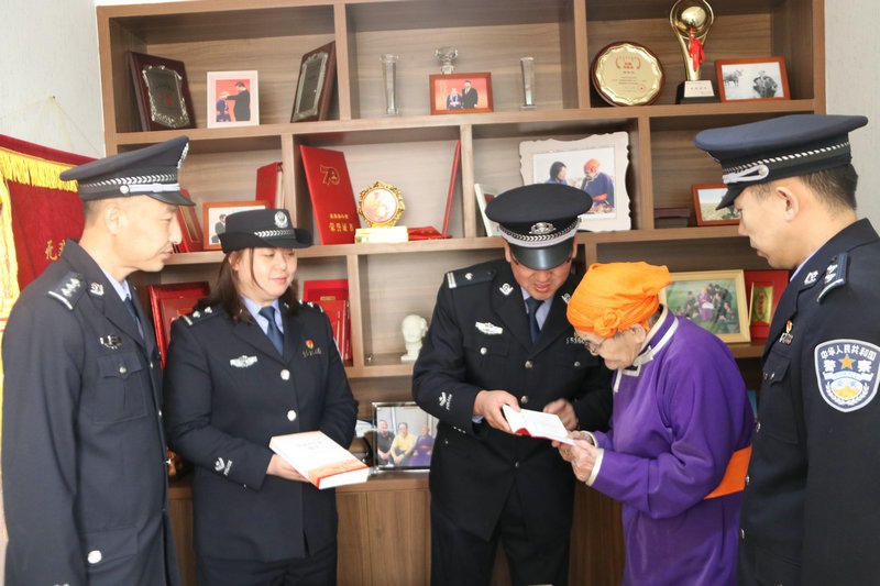 5月6日上午,民警們手捧鮮花來到都貴瑪老人家。一進家門,便為都貴瑪老人送上了節(jié)日的祝福。民警們與都貴瑪老人嘮起了家常,詳細詢問老人的身體狀況和生活情況。大家你一言,我一語,聊著聊著,就談到了當前開展的黨史學習教育。民警們把自己的學習體會和收獲一一向都貴瑪老人作了匯報。都貴瑪老人說,自己也通過觀看《新聞聯(lián)播》了解到國家十四五開局之年和全黨開展黨史學習教育的相關(guān)內(nèi)容。特別是看到民警們帶來的黨史書籍時,都貴瑪老人和大家講述了他們那一代人如何利用蒙文版書籍學習黨章黨史的故事,再次回顧了習近平總書記為她授予“人民楷模”國家榮譽稱號獎?wù)聲r的自豪和激動。