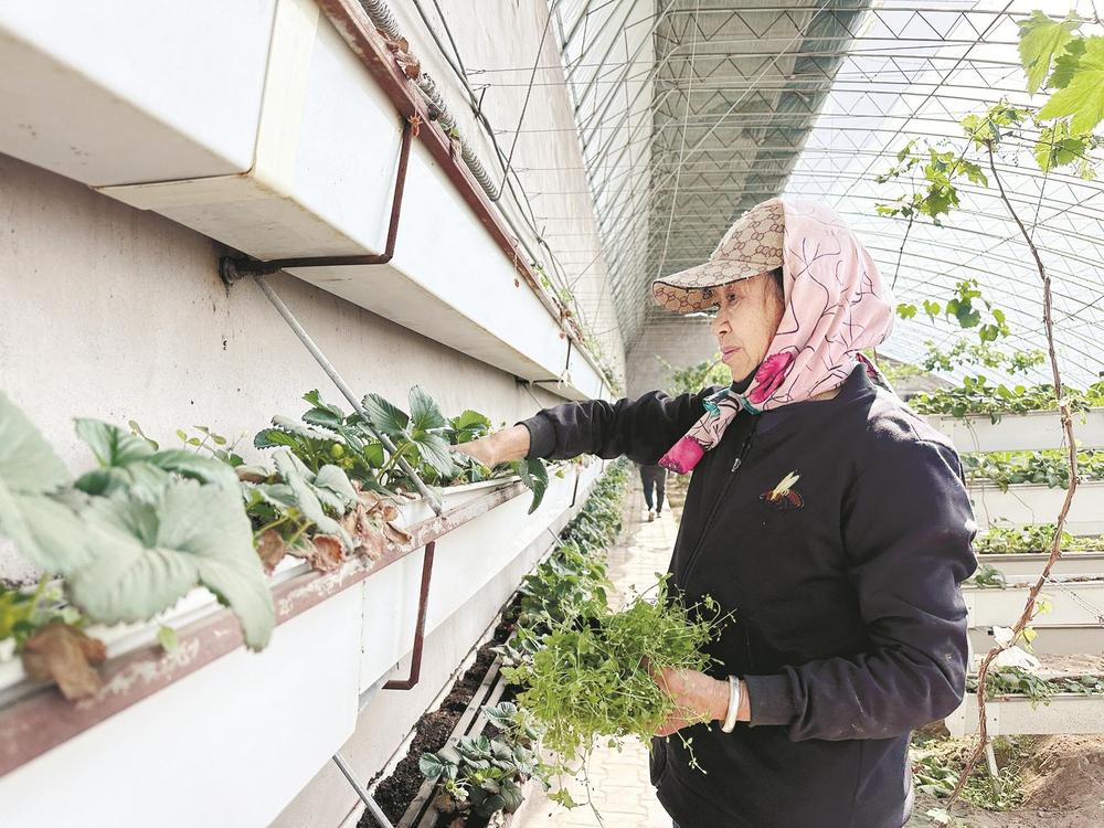 走進(jìn)草莓大棚內(nèi),濃濃的暖意撲面而來(lái)。抬眼望去,離地一米多的種植架上種滿了生機(jī)勃勃、長(zhǎng)勢(shì)喜人的草莓;穿梭在種植架間,一顆顆鮮紅欲滴、圓潤(rùn)飽滿的草莓宛如璀璨的紅寶石,從綠葉間“探出頭”來(lái),高高地懸掛在空中,散發(fā)著誘人的清香。種植戶牛尚海正在察看采用立體栽培技術(shù)的草莓長(zhǎng)勢(shì)情況?!斑@是一種三維立體種植方式,能夠充分利用空間和光照,大幅度提高生產(chǎn)效率。以前一畝地最多種8000株,現(xiàn)在能種2.4萬(wàn)株,產(chǎn)量提高了3倍,而且草莓個(gè)頭更均勻,賣相更好。”牛尚海告訴記者,這種種植方式不僅省工、省力,還降低了勞動(dòng)強(qiáng)度,摘草莓也不用彎腰了。此外,這種種植模式比傳統(tǒng)種植模式每畝節(jié)水50%。