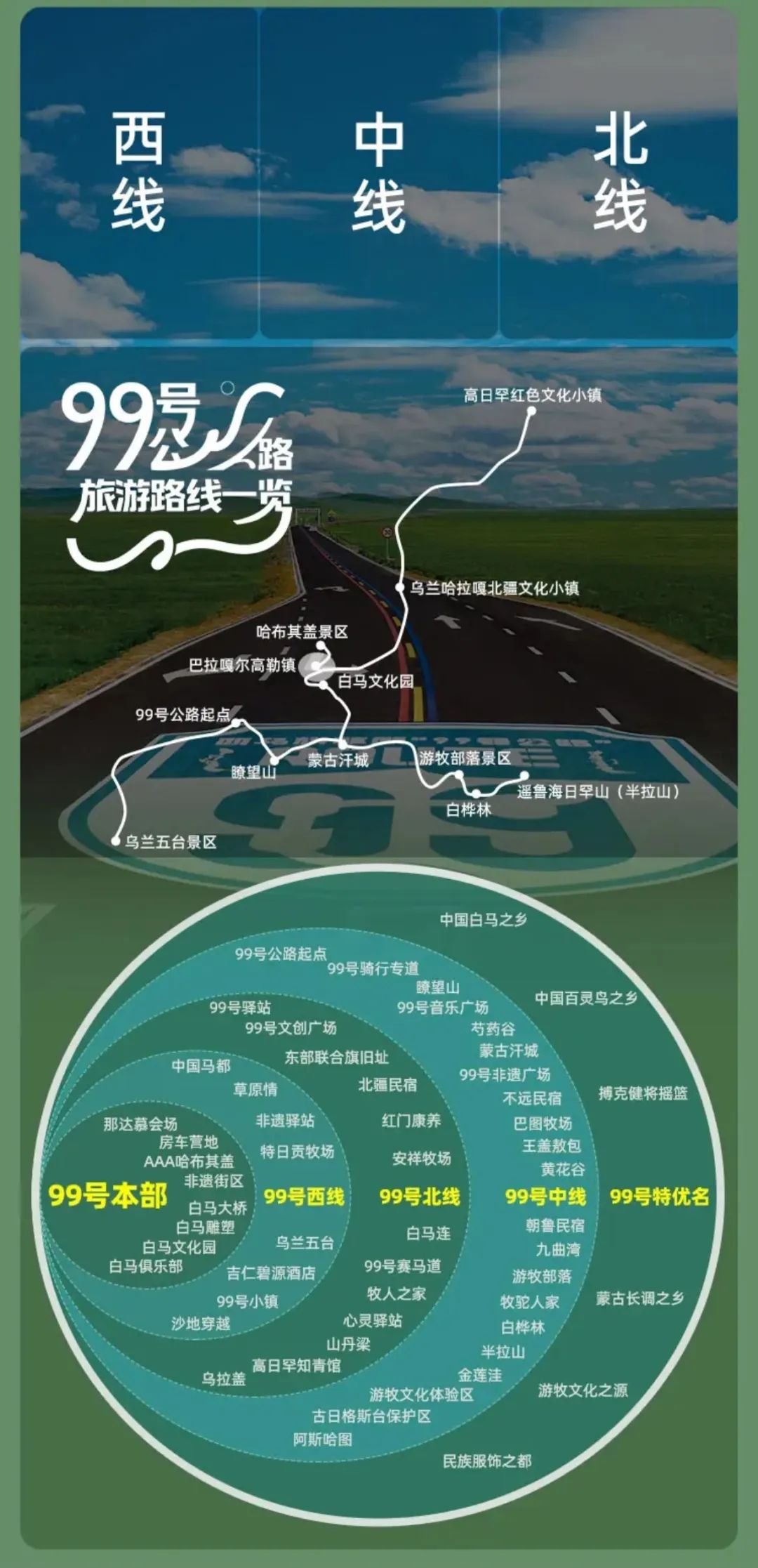 西烏旗草原“99號公路”分為西線、中線和北線