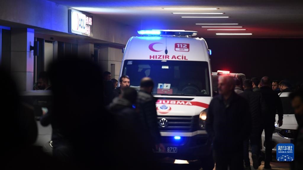 11月13日,一輛救護(hù)車停在土耳其伊斯坦布爾市中心塔克西姆廣場(chǎng)附近一家醫(yī)院。新華社記者沙達(dá)提攝