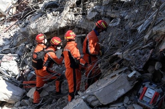 2月14日,中國救援隊(duì)與中國香港特區(qū)救援隊(duì)聯(lián)合編組在土耳其哈塔伊省安塔基亞市開展救援工作。
