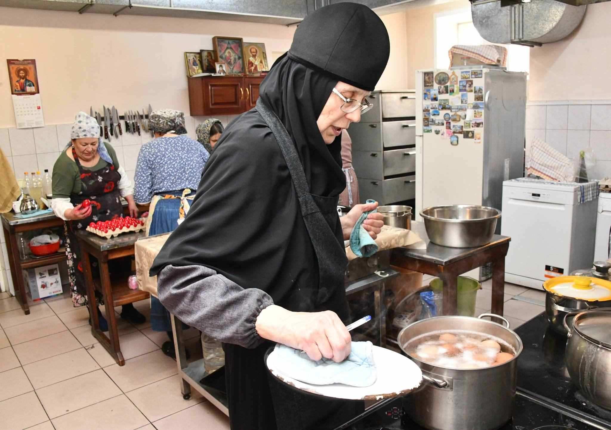 當(dāng)?shù)貢r(shí)間2023年4月13日,俄羅斯扎貝卡爾斯基地區(qū),阿塔馬諾夫卡定居點(diǎn)的一修道院內(nèi),民眾在制作東正教復(fù)活節(jié)前的傳統(tǒng)煮雞蛋。視覺中國(guó)