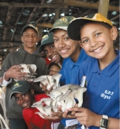 在巴布亞新幾內(nèi)亞東高地省,澳大利亞國際學校學生到菌草示范基地參觀學習。中國國家菌草工程技術(shù)研究中心供圖