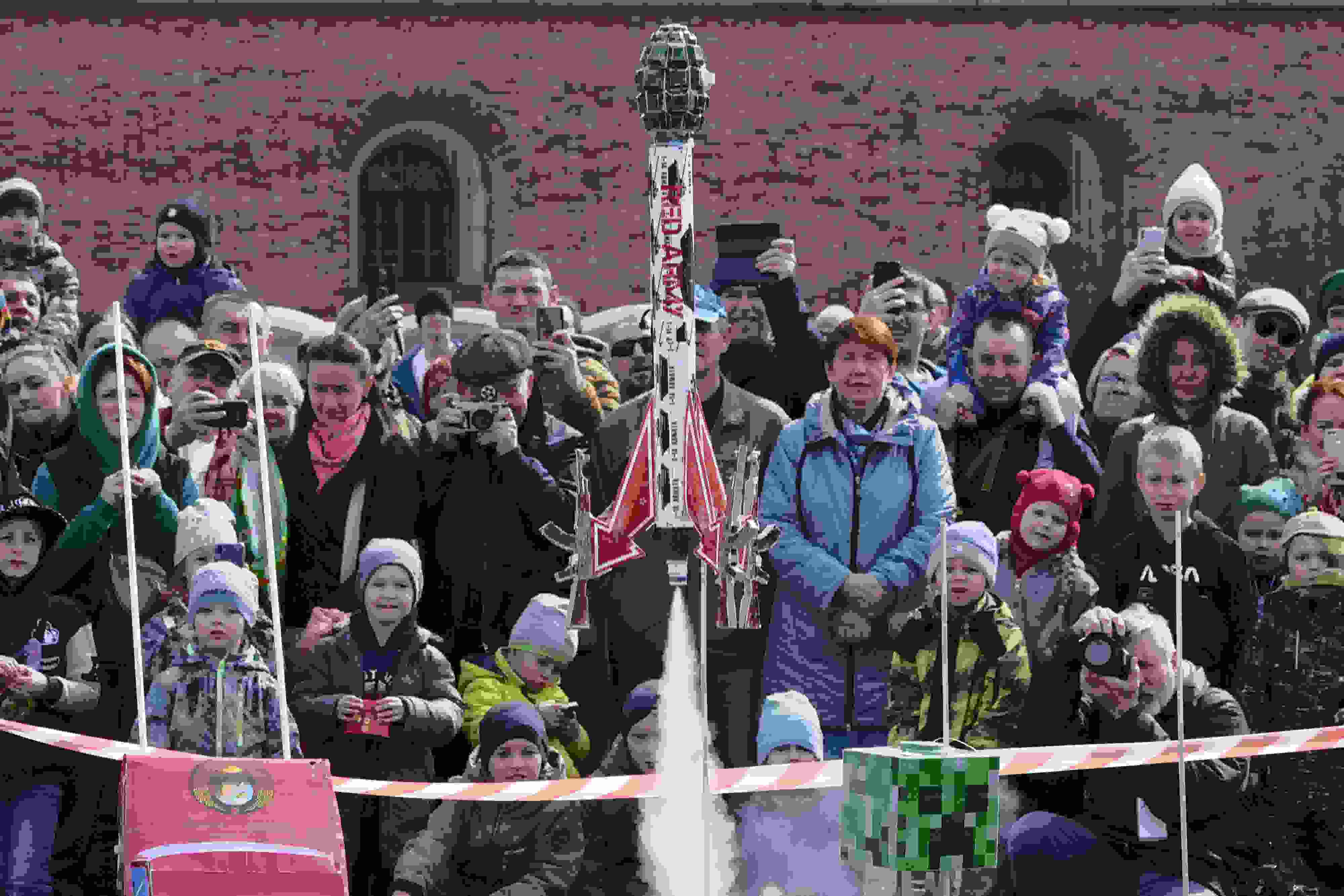 當(dāng)?shù)貢r(shí)間2023年4月16日,俄羅斯圣彼得堡,民眾發(fā)射火箭模型紀(jì)念人類首次太空飛行62周年。 視覺中國(guó)