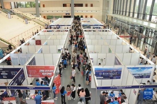 4月22日,在位于越南首都河內(nèi)的國(guó)家會(huì)議中心,留學(xué)咨詢(xún)者絡(luò)繹不絕。新華社記者 陶軍 攝