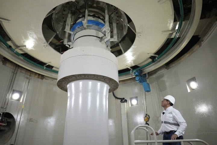 帕圖卡三水電站內(nèi),水電站運(yùn)營總經(jīng)理內(nèi)爾松·奧爾特加在檢查設(shè)備運(yùn)行狀況。(戴維·德拉帕斯攝)