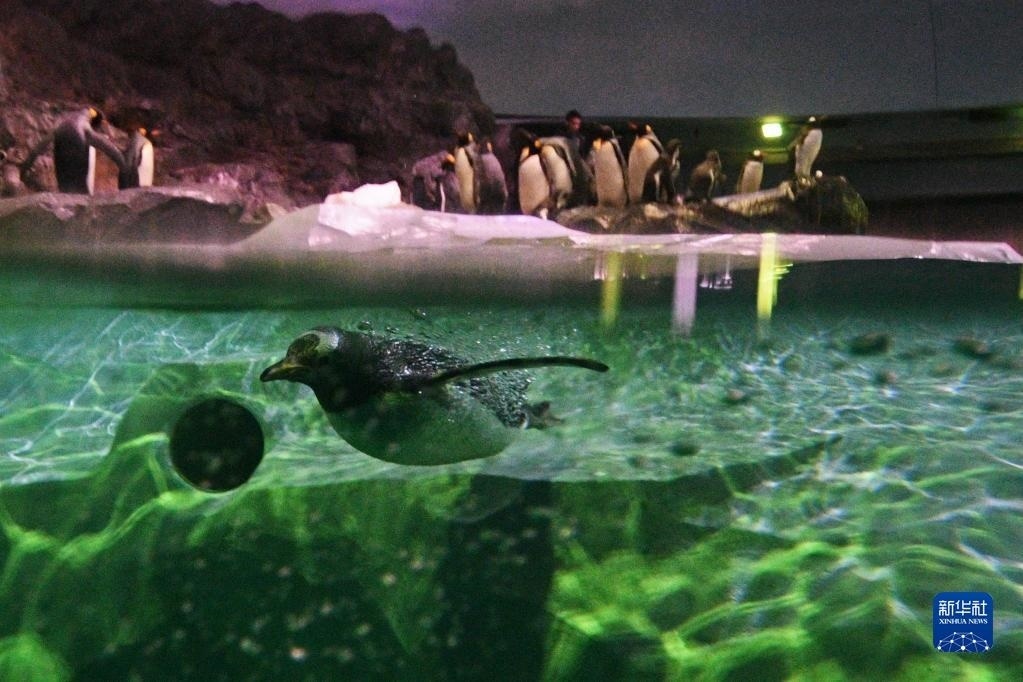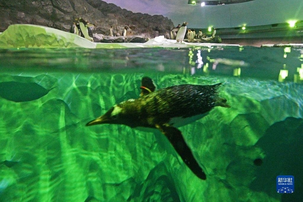 這是5月8日新加坡飛禽公園開(kāi)放當(dāng)天拍攝的潛水的企鵝。