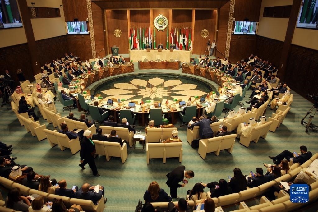 這是5月7日在埃及開羅拍攝的阿拉伯國家聯(lián)盟外長級特別會議現(xiàn)場。