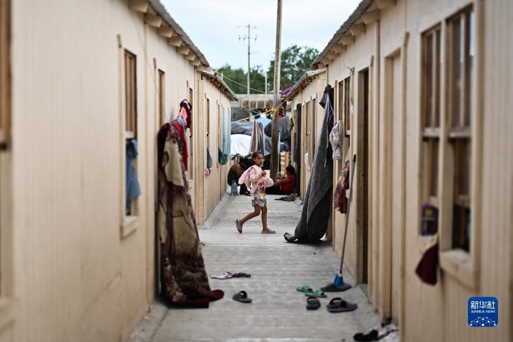 這是5月16日在美墨邊境城市墨西哥雷諾薩的一處收容所內(nèi)拍攝的移民兒童。