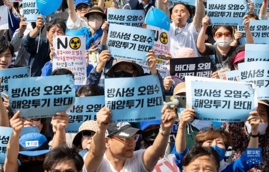 當(dāng)日下午,韓國“韓日歷史正義和平行動”、《6·15共同宣言》韓方實踐委員會等市民團體和從各地趕來的民眾聚集在首爾市世宗大路,舉行“阻止日本放射性污染水排海全國行動”大會,敦促日本政府采取負責(zé)任的行動、停止推進核污染水排海計劃。