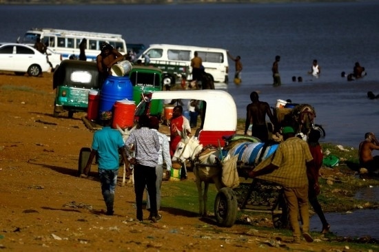 4月17日,由于武裝沖突導(dǎo)致停水,蘇丹喀土穆市民到尼羅河打水。新華社發(fā)(穆罕默德·海德?tīng)枖z)