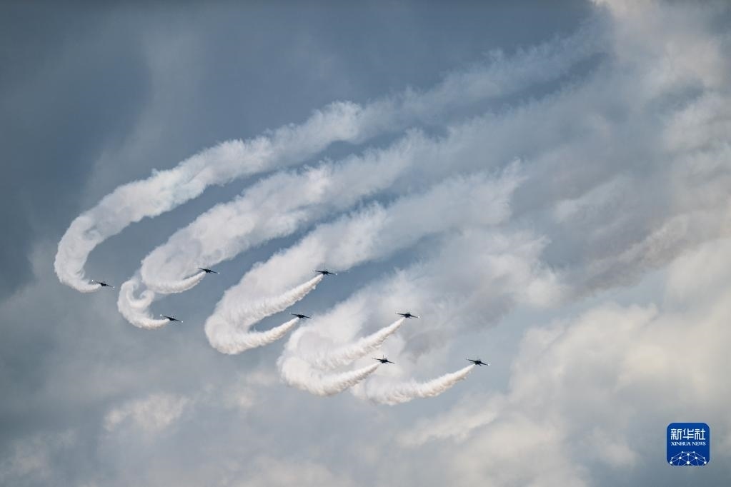 5月23日,在馬來西亞蘭卡威舉行的第16屆蘭卡威國際海事和航空展上,飛行表演隊進(jìn)行特技飛行表演。