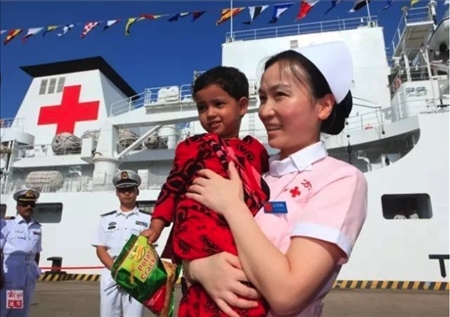 2013年,“和平方舟”號醫(yī)院船再次來到孟加拉國。上萬民眾自發(fā)涌向中國醫(yī)院船,最高單日門診1700余人次。3歲的阿里法·沁健康么?中國軍醫(yī)牽掛著她。她家住在偏僻農村,中國軍醫(yī)設法找到了她,邀請她登上“和平方舟”號醫(yī)院船體檢。