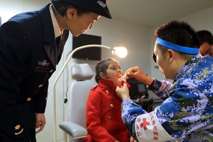 2019年12月9日,在“和平方舟”號醫(yī)院船上,口腔科醫(yī)生給沁做檢查。新華社發(fā)(吳煒權 攝)