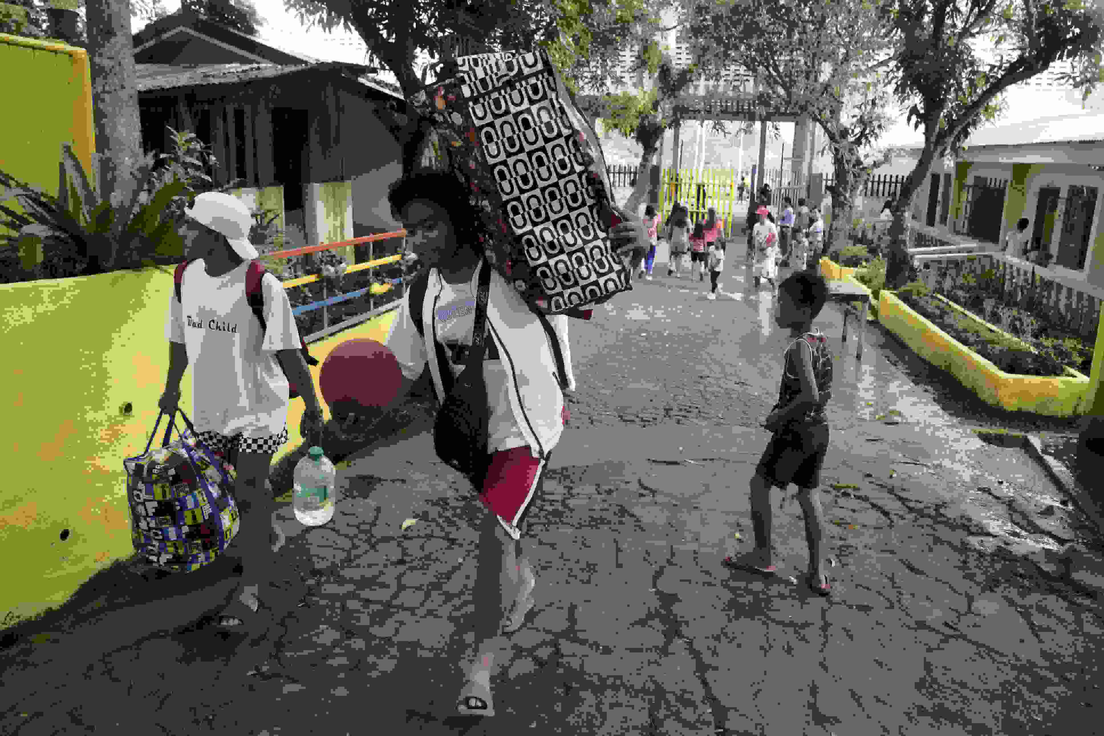 當地時間2023年6月10日,菲律賓阿爾拜省,撤離人員帶著他們的物品抵達臨時安置點。 視覺中國
