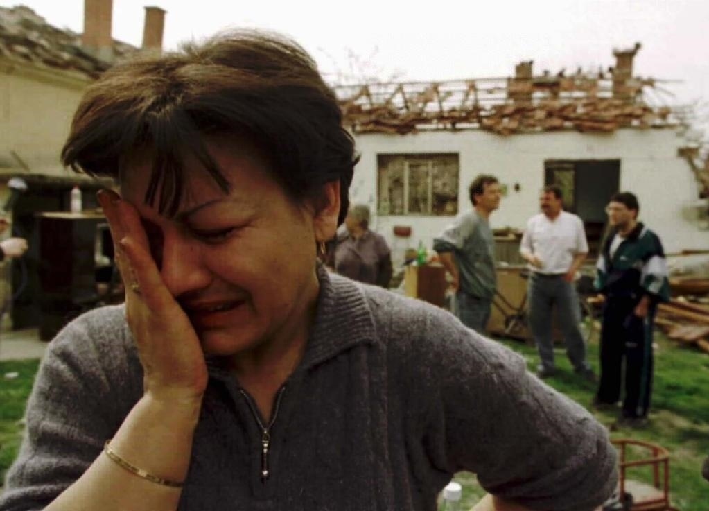 1999年4月9日,在南聯(lián)盟塞爾維亞共和國(guó)小城楚皮亞附近的村莊里,42歲的薇拉·米哈洛維奇站在被炸毀的房子前失聲痛哭。1999年3月,以美國(guó)為首的北約軍隊(duì)打著“避免人道主義災(zāi)難”的旗號(hào),公然繞過(guò)聯(lián)合國(guó)安理會(huì),對(duì)當(dāng)時(shí)的南斯拉夫聯(lián)盟共和國(guó)進(jìn)行了78天的持續(xù)轟炸,造成2000多名無(wú)辜平民喪生。(新華社記者黃文攝)
