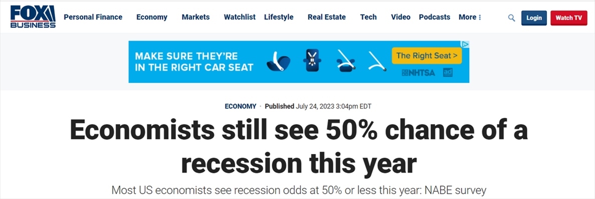 據(jù)美國《福克斯新聞網(wǎng)》報(bào)道,美國商業(yè)經(jīng)濟(jì)協(xié)會(huì)發(fā)布的一項(xiàng)新調(diào)查,絕大多數(shù)商業(yè)經(jīng)濟(jì)學(xué)家仍然認(rèn)為美國經(jīng)濟(jì)今年陷入衰退的可能性為50%。