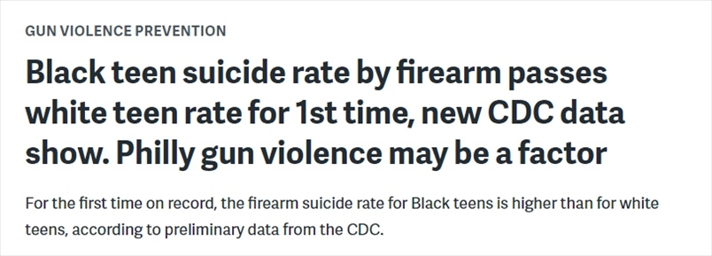 約翰斯·霍普金斯大學(Johns Hopkins University)最近的研究分析使用了2022年的初步統(tǒng)計數(shù)據進行計算,結果顯示,2022年全美總體槍支自殺率升至歷史最高水平。研究人員還發(fā)現(xiàn),黑人青少年的槍支自殺率首次超過了白人青少年。