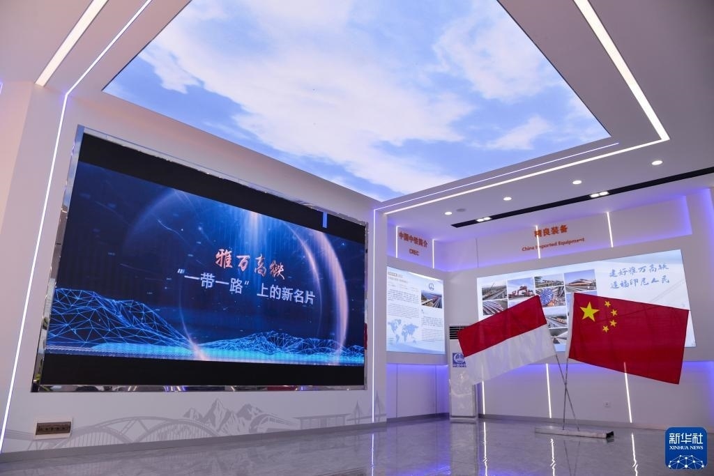 這是7月20日在印度尼西亞萬隆德卡魯爾車站旁拍攝的中國中鐵印尼雅萬項目經(jīng)理部展廳內(nèi)景。新華社記者 徐欽 攝