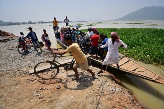 8月30日,人們?cè)谟《葨|北部阿薩姆邦一處洪災(zāi)區(qū)域乘船出行。新華社發(fā)