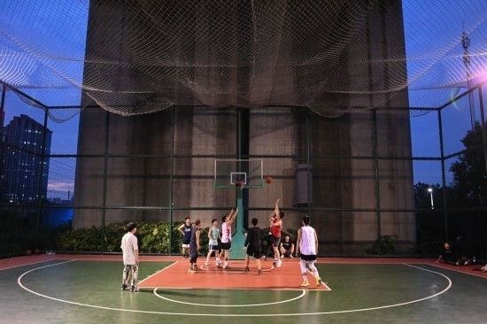 2022年9月20日,杭州市民在位于高鐵橋下的錢江世紀城體育公園打籃球。新華社記者 黃宗治 攝