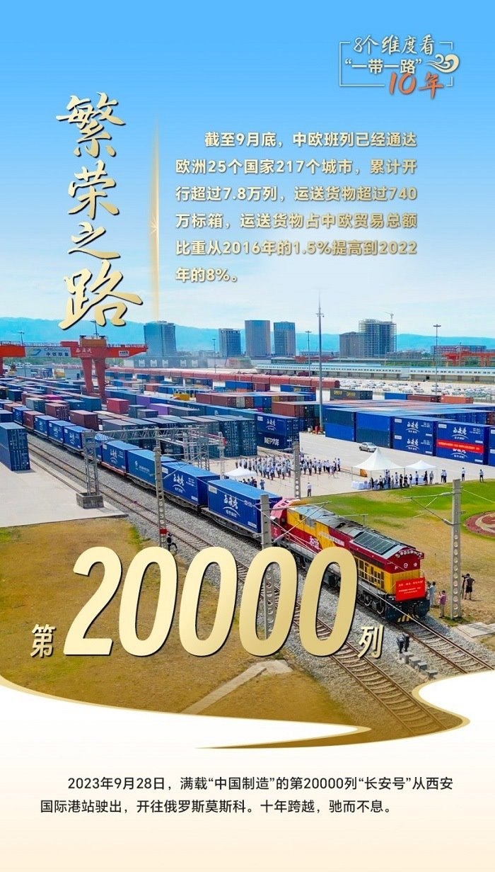 第20000列“長(zhǎng)安號(hào)”從西安國(guó)際港站駛出,給世界送去“中國(guó)制造”;中老鐵路突破重山阻隔,成為國(guó)際物流的“黃金通道”;蒙內(nèi)鐵路聯(lián)通東西,是東非鐵路網(wǎng)的開(kāi)端,更是一條充滿希望的經(jīng)濟(jì)走廊……一個(gè)個(gè)合作豐碑,搭建起高效的貿(mào)易通道網(wǎng)絡(luò)平臺(tái),助力各國(guó)走好走穩(wěn)“一帶一路”這條繁榮之路。