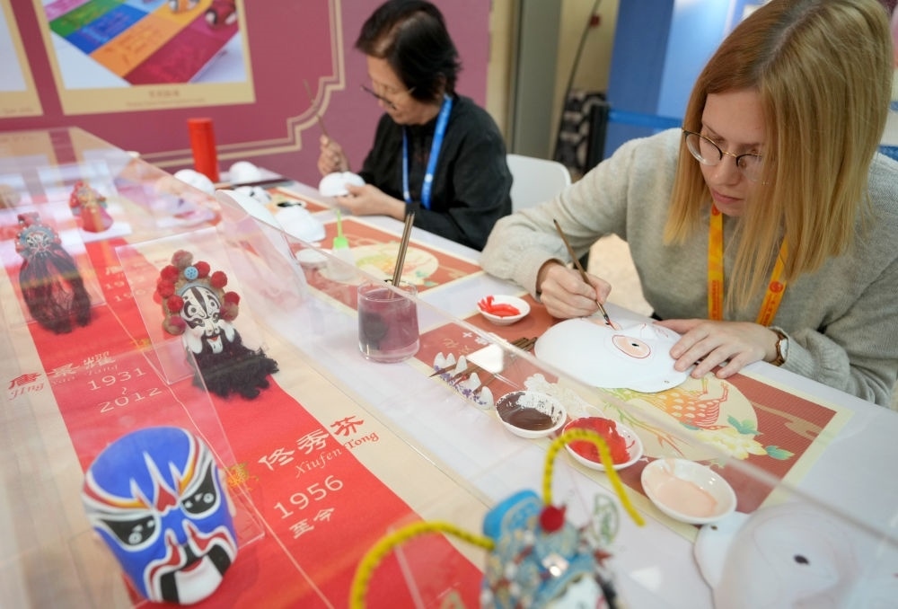 參加論壇報(bào)道的哈薩克斯坦BAQ通訊社記者古爾然·拉曼庫洛娃對新聞中心的科技文化互動展示區(qū)印象頗深。彩塑京劇臉譜、木版水印、景泰藍(lán)制作等“非遺”體驗(yàn)項(xiàng)目,讓他們近距離感受到中國傳統(tǒng)文化的魅力。