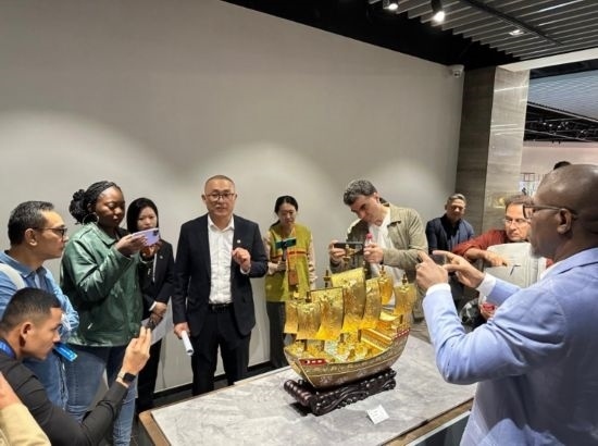 嘉賓在中國工藝集團(tuán)體驗(yàn)景泰藍(lán)制作過程 (新華社記者王艷剛攝)