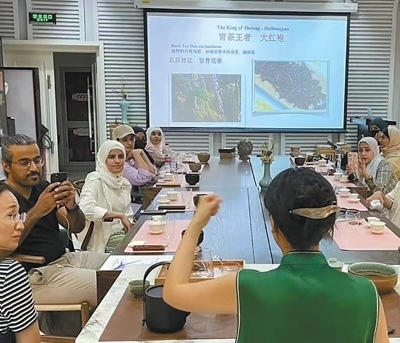 2023年7月,沙特中文學(xué)習(xí)者那丹(左三)在北京語言大學(xué)體驗(yàn)中國茶文化。以上圖片均為受訪者提供