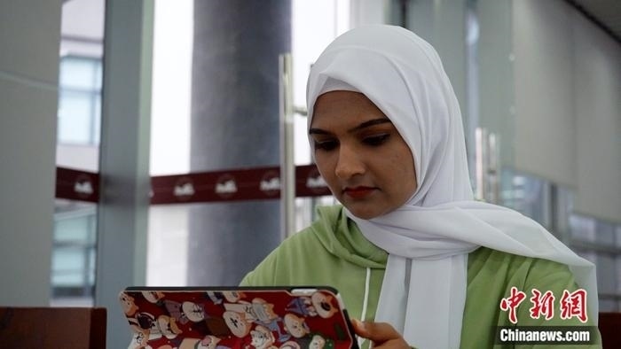 近日,在四川成都,巴基斯坦姑娘田花花在成都中醫(yī)藥大學(xué)學(xué)習(xí)。高嘉琪 攝