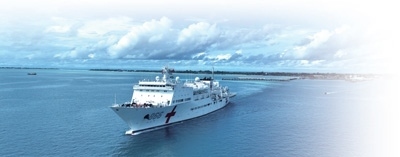 7月22日,正在執(zhí)行“和諧使命—2023”任務(wù)的中國(guó)海軍“和平方舟”號(hào)醫(yī)院船結(jié)束對(duì)基里巴斯的訪問駛離塔拉瓦港。桂江波攝(新華社發(fā))