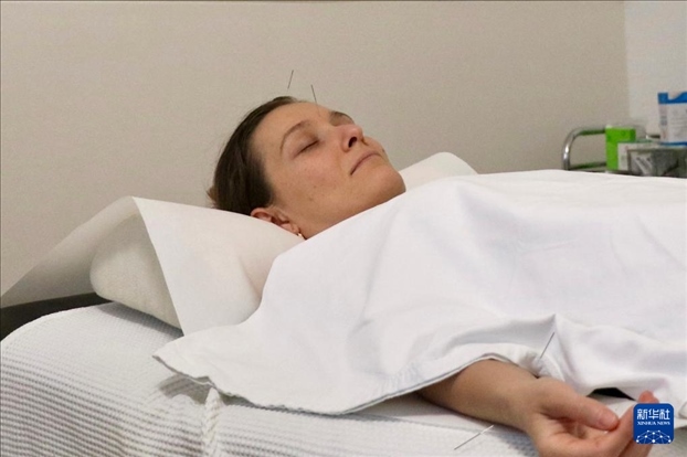 ?12月11日,在瑞士邊境城市沙夫豪森的一家中醫(yī)診所,患者米羅斯拉娃接受針灸治療。