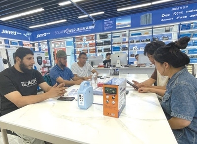 最近,埃馬紐埃爾又開始關(guān)注新能源產(chǎn)品。“喀麥隆一些地方存在電力短缺、供電不穩(wěn)的問題,很多當(dāng)?shù)厝讼M夷茉谥袊业胶线m的產(chǎn)品?!睘榇?,他把目標(biāo)瞄準(zhǔn)了義烏國際商貿(mào)城的新能源產(chǎn)品市場(chǎng),尋找到一些適合喀麥隆的光伏設(shè)備?!爸袊男履茉串a(chǎn)品性能可靠、性價(jià)比高,產(chǎn)品品類覆蓋領(lǐng)域廣泛?!卑qR紐埃爾表示,大到醫(yī)療機(jī)構(gòu),小到禽畜養(yǎng)殖場(chǎng),中國光伏設(shè)備供應(yīng)的電力有助于滿足當(dāng)?shù)孛癖娚a(chǎn)生活的用電需求。