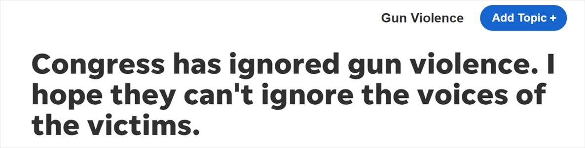 更為不幸的是,美國國會始終未能保護民眾免于遭受這種恐怖經(jīng)歷,他們對此選擇無視,無視美國的槍支暴力頑疾。