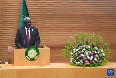 2月17日,在埃塞俄比亞首都亞的斯亞貝巴,非盟委員會主席法基在開幕式上發(fā)言。新華社發(fā)(邁克爾·特韋爾德攝)