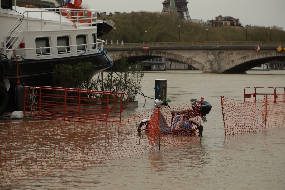 當(dāng)?shù)貢r間2024年4月6日,法國巴黎,塞納河沿岸被洪水淹沒。