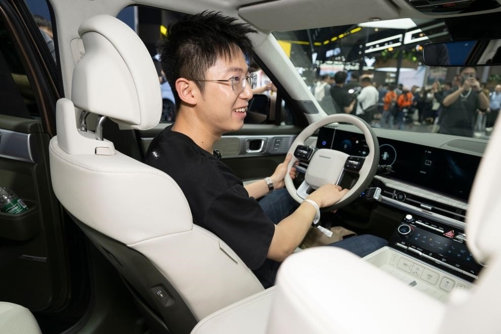 ?4月25日,在北京中國(guó)國(guó)際展覽中心順義館舉行的2024北京車展上,觀眾觀看北京現(xiàn)代全新勝達(dá)。新華社記者才揚(yáng)攝