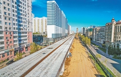 哈薩克斯坦阿斯塔納市輕軌是中亞地區(qū)首條城市輕軌線路,途經努爾蘇丹國際機場、納扎爾巴耶夫大學、世博園、總統(tǒng)府、新火車站等阿斯塔納市地標建筑和重點功能區(qū),全長22.4公里。中國企業(yè)中建六局承建了其中的18.34公里,共計9個車站及14個區(qū)間。該輕軌項目建成通車之后,線路兩端的通勤時間可以縮短近一半,將成為哈薩克斯坦乃至中亞地區(qū)最具技術代表性的城市軌道交通項目。目前該項目建設正在穩(wěn)步推進中。