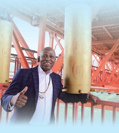在位于安順市的壩陵河大橋,尼日利亞駐上海總領(lǐng)事館商務(wù)專員哈桑在觀光步道中央拍照留念。